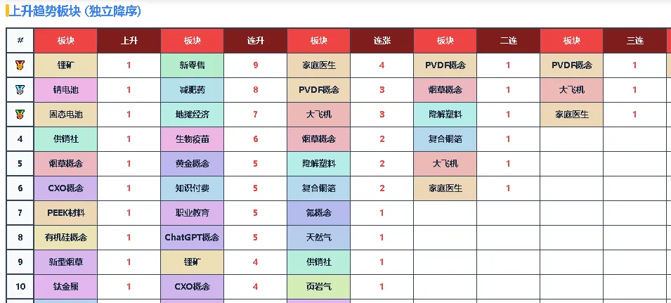 板块周期总览图包括当下最强的20个板块走势图形,强势突破板块一目了然,主线板块、支线板块之间的主次波动关系更加清晰!