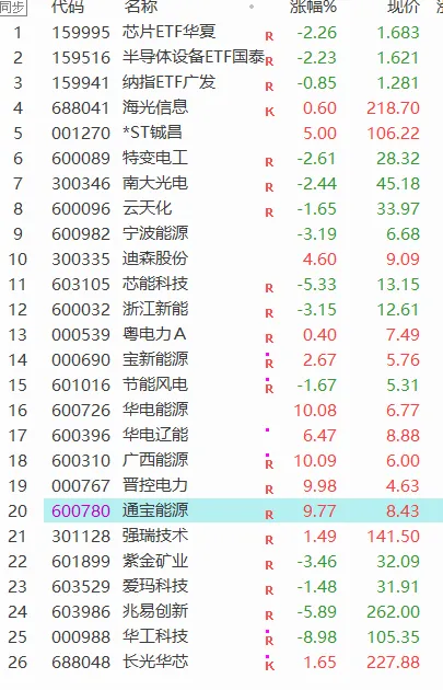 广西能源、通宝能源等低价电力股今天也表现强劲。