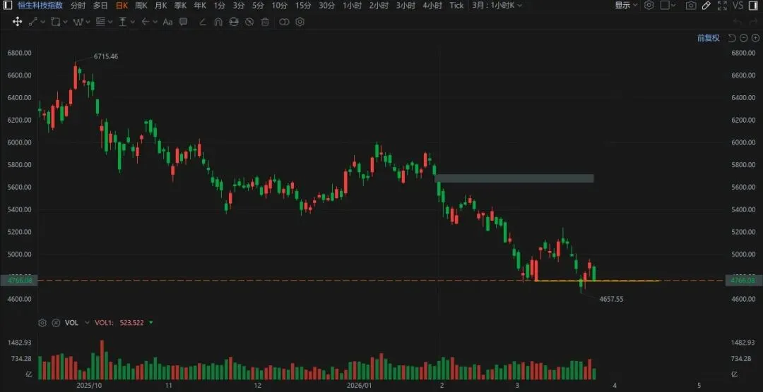 恒生科技今天也不行,还在支撑挣扎