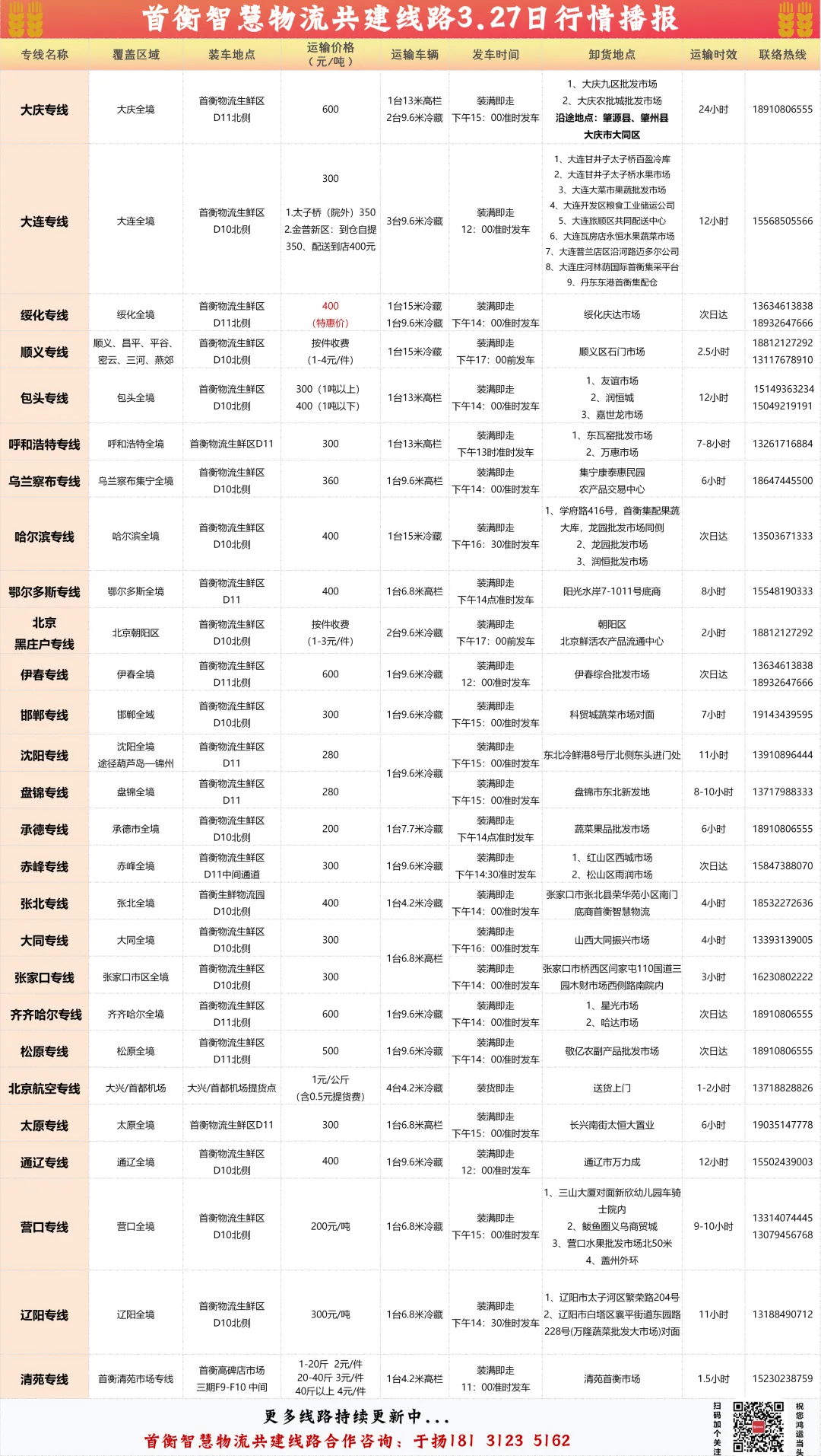 哈尔滨专线 运价400元/吨 13503671333
