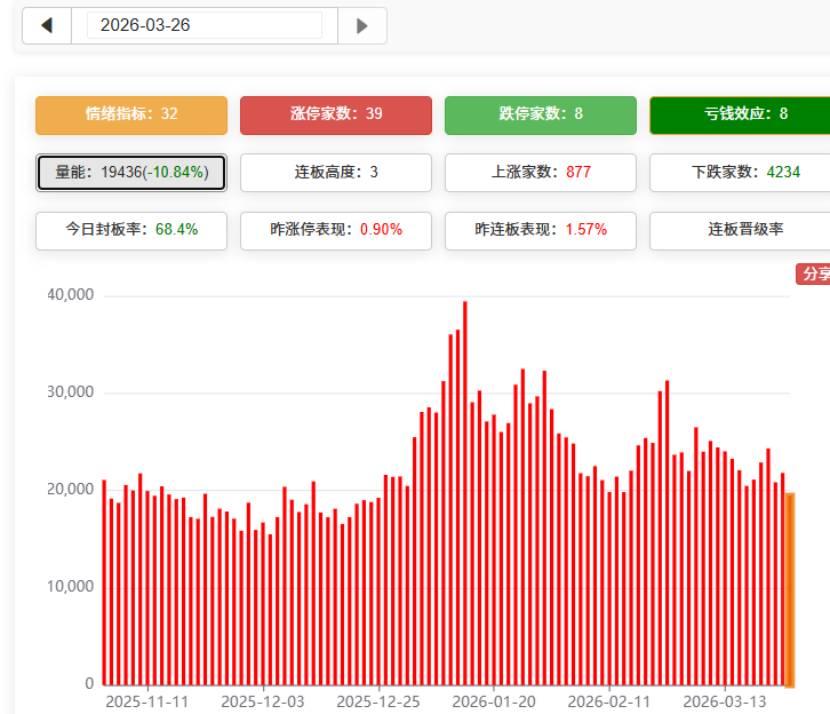 电力为本轮穿越性主线,赚钱效应突出,行情难以快速终结。华D辽能作为板块高度标,昨日爆量承接超预期,但今日若大幅上涨,将触发 30 天 200% 异动规则,监管压力大于 7 天 100%。