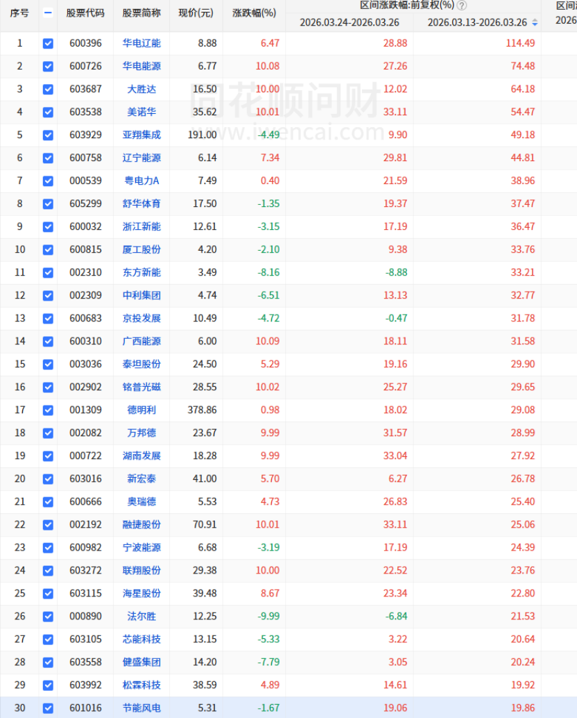 连板高度压缩至 3 板,正常具备冲 5 板的空间。新N泰山为共振日一字板标的,是低位电力核心锚点,逻辑对标稀土行情中的金力永磁。若华电系为双子星,华能系的新N泰山若持续超预期,或带动华能系补涨,需临盘验证市场认可度。
