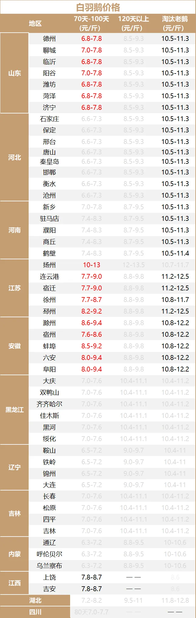 白条鹅价格基本平稳,未来行情预计继续保持平稳。