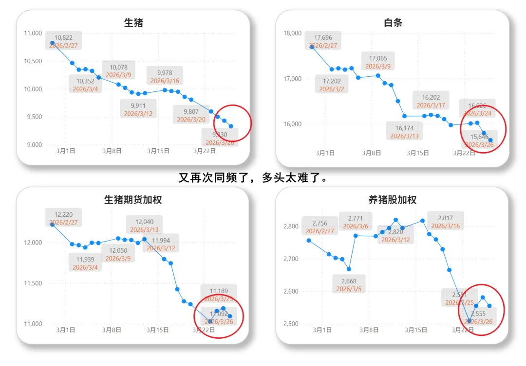 至此,生猪,白条,期货,股票再度同频了。齐刷刷下跌。