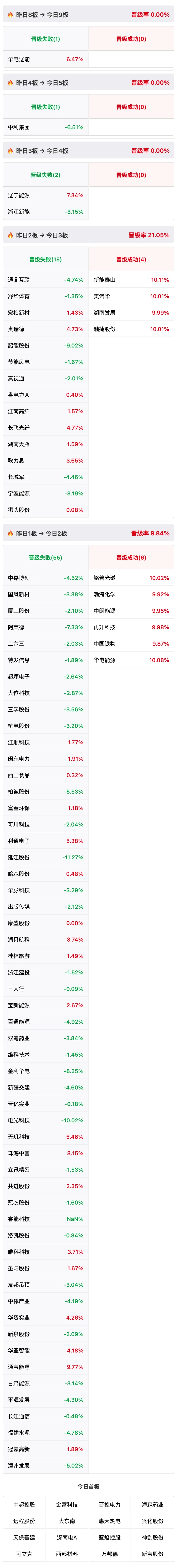 2连板:华电能源 首板:晋控电力、深南电A | |