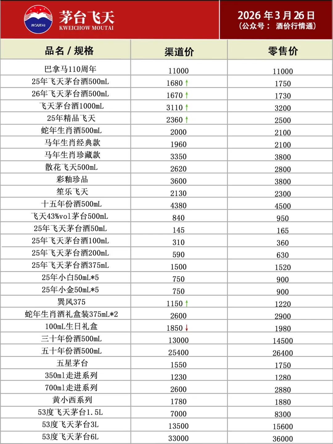 >飞天价格持续上涨!3月26号酒价行情 价格突破1670!