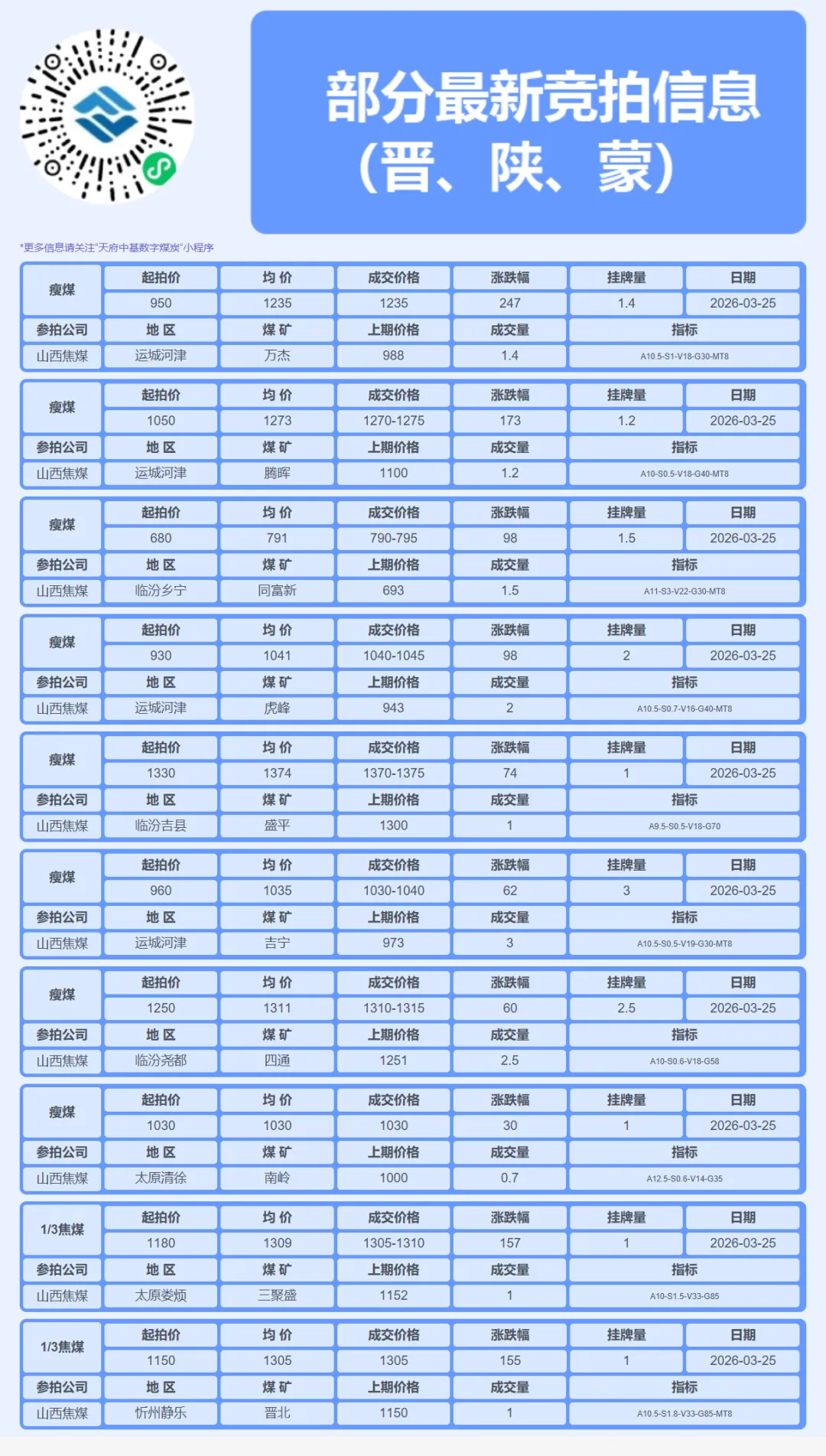 2026年3月25日,焦煤焦炭市场呈现 “内强外弱、期现分化、结构性上涨” 的复杂格局。国内焦煤市场走势分化,山西低硫主焦煤出厂价续涨17元至1581元/吨,济宁气煤价格单日暴涨60元至1040元/吨,而高硫、中硫主焦及肥煤价格持稳。进口蒙煤市场则表现疲软,甘其毛都蒙5#原煤价格微跌4元。焦炭现货市场全面持稳,尽管河北、山东、山西等多地焦企自3月23日起密集开启首轮50-55元/吨的提涨,但下游钢厂暂未接受,提涨陷入僵局。