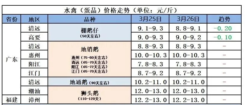 2026年3月27日全国鲜鸭蛋价格