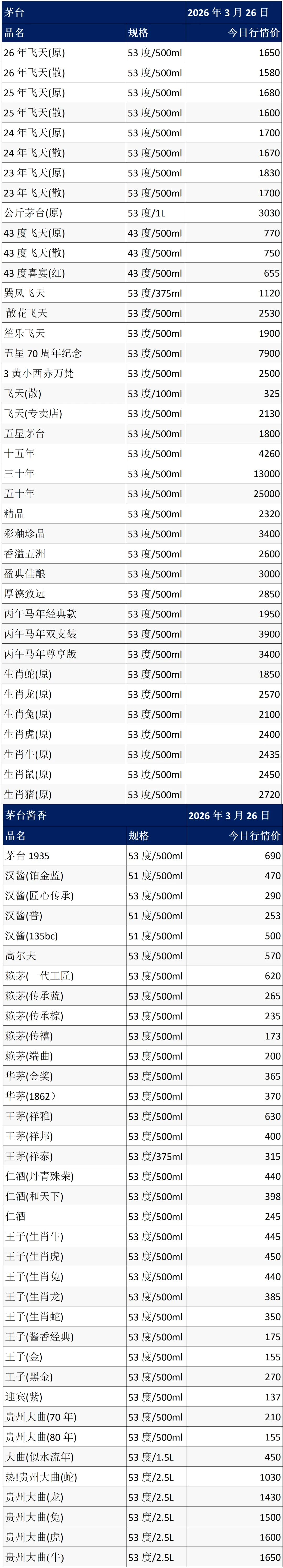 当前位置:首页>行情>【茅粉情报】3月26日各大名酒批发行情参考价....