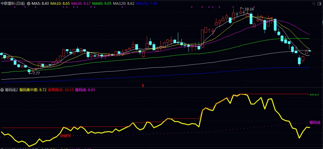 ✅ 筹码集中线:代表筹码在低位聚集,主力吸筹充分