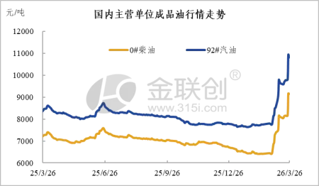 随着美国与伊朗相继提出停火协议方案,以及3月25日伊朗有条件放开霍尔木兹海峡,中东原油供应有望逐步恢复。此前部分海湾石油生产国通过绕行方式出口石油,市场对地缘局势与原油断供的担忧预计将逐步减弱。同时,美伊双方谈判态度趋于缓和,地缘局势对石油溢价的支撑亦随之减弱。叠加成品油零售端呈现下调预期,消息面指引或延续偏弱运行。