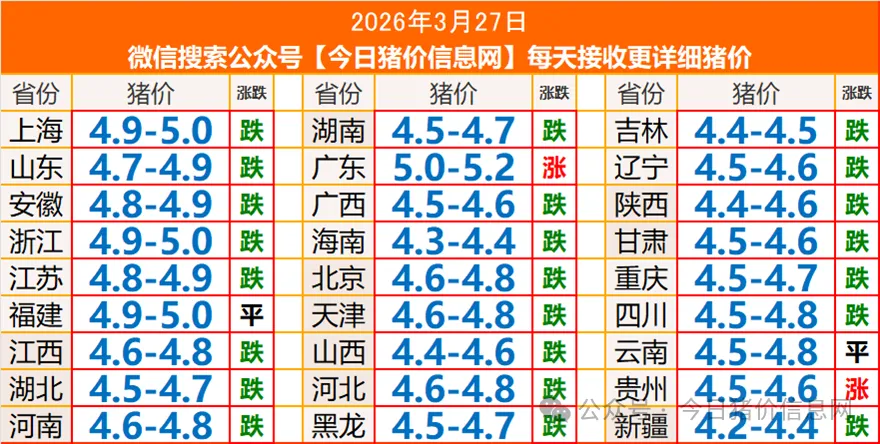 >2026年3月27日全国猪价行情表