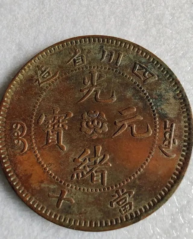 四川省造的这枚老十文,偏红铜,花纹略起霜,看着不吓人,用的时候不少,换手数也高,可能南方家里老人抽屉里还搁着几枚,这些年说起来行情动静不大,偶尔有个特版过万,一般品就是值点回忆钱,有藏友感叹:“唯有那些不舍得放手的精品,才经得起时间和行情的检验。”