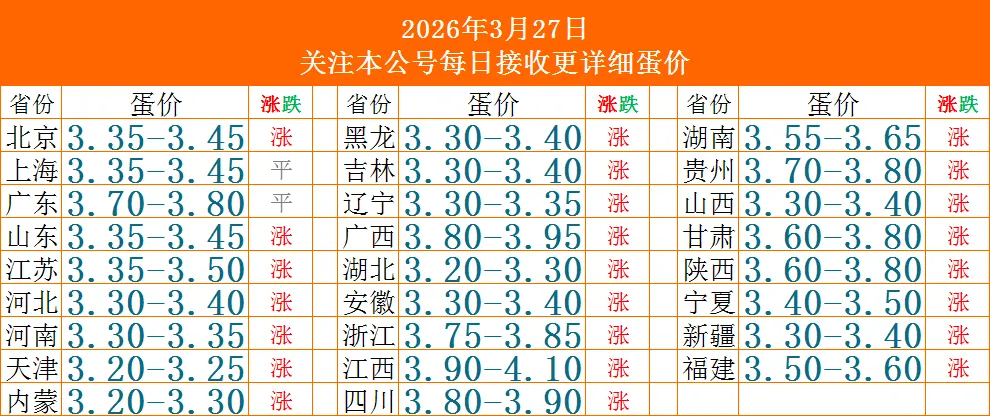 今日鸡蛋价格行情(2026年3月27日微硬)蛋价未来15天预测