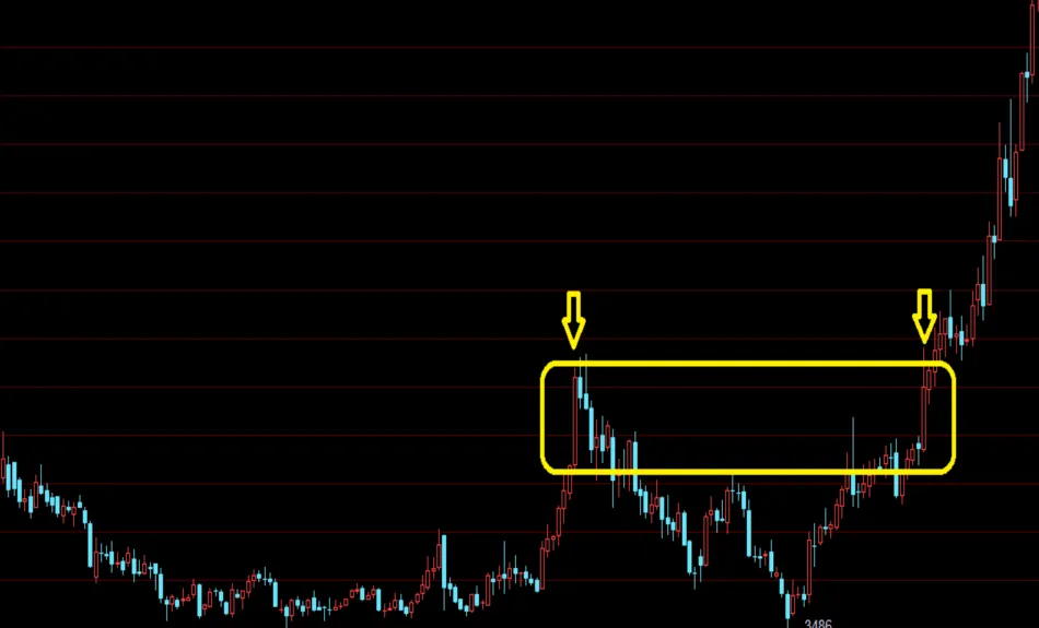 以上图案例为证,在价格开启大幅上涨之前,于初期上涨区间(此时尽管价格有所攀升,但相较于最低点,整体涨幅并不显著)先后各出现了一根实体较大的阳线。值得注意的是,这两根阳线在当时的一段行情之中,实体长度是最大的。这一现象清晰地反映出,在该区间内多方占据着绝对的主导地位。