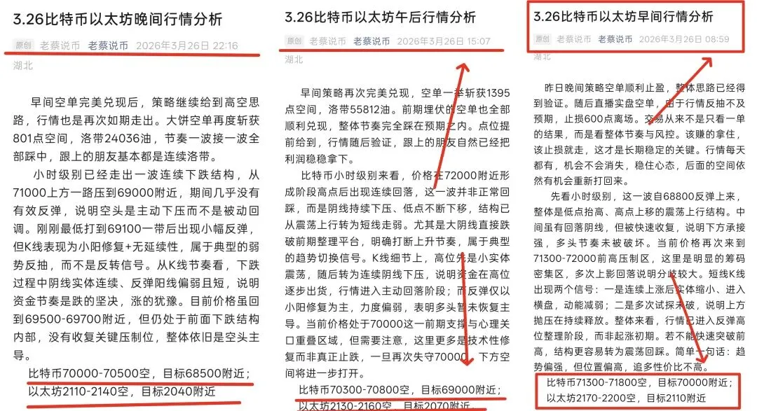 当前小时级别已经走出明显转弱结构,从高位回落后呈现连续阴线下压,高低点同步下移,说明空头持续主导盘面;中间反弹力度偏弱,多为小阳修复且无法站稳关键压制位,整体仍处于下跌后的弱势整理阶段,在未有效收复69000-70000区域之前,行情大概率延续震荡偏空,反弹更多是给二次做空的机会。