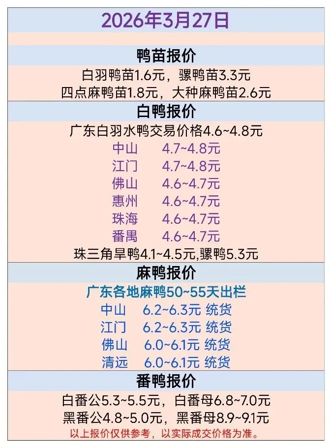>2026年3月27日广东毛鸭行情