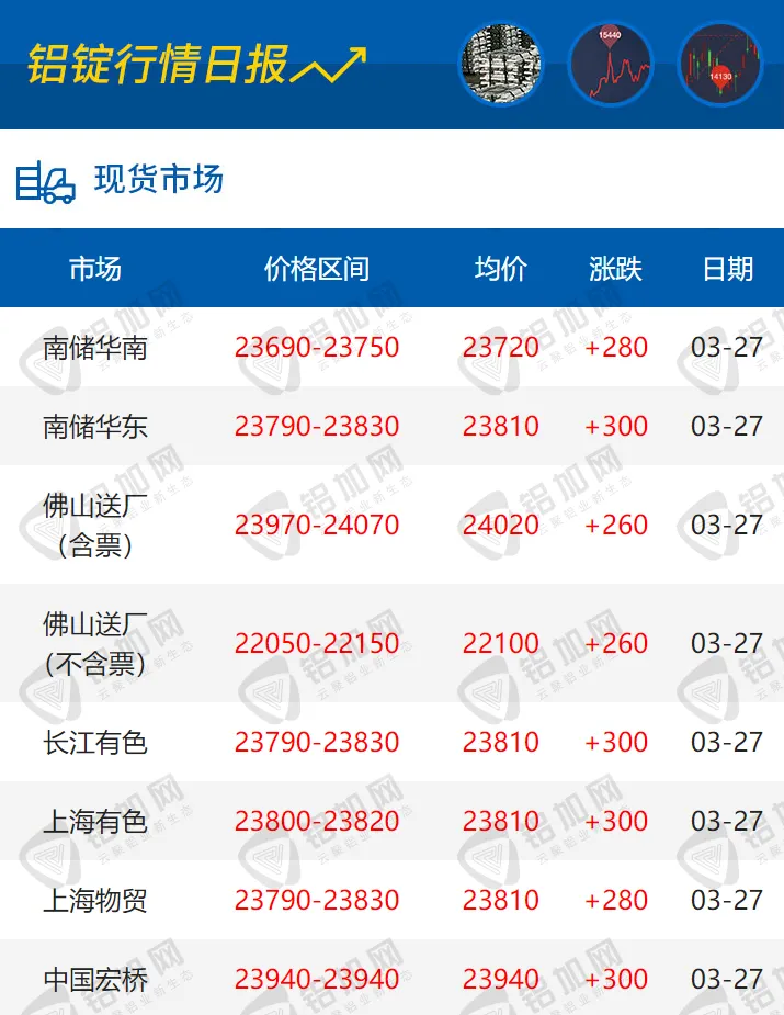 今日铝锭市场行情动态:2026 年 3 月 27日南海灵通铝锭价行情更新!