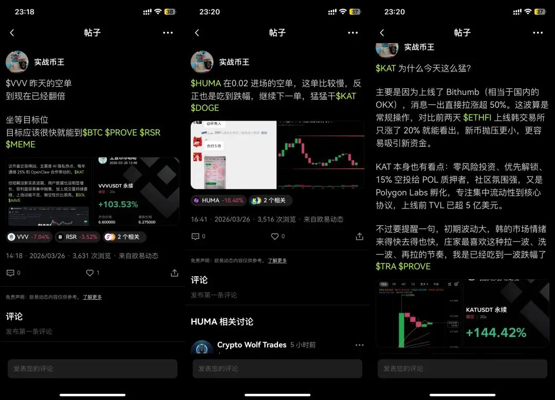 VVV、HUMA、KAT,恭喜跟上的各位,接下来我又选了几个币,继续干他!