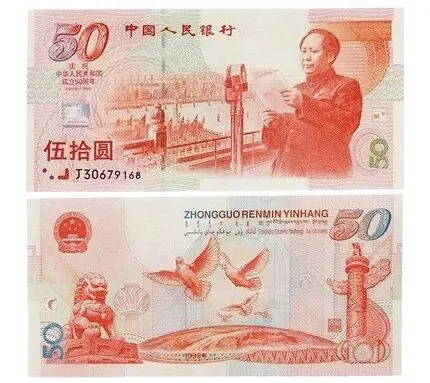 1999年9月20日发行,塑料钞,面值50元,发行总量6000万张。