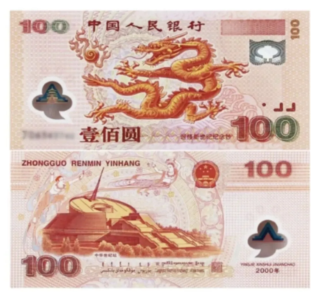 2000年11月28日发行,塑料钞,面值100元,发行总量1000万张。