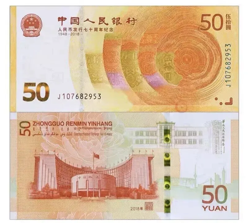 2018年发行,塑料钞,面值50元,发行总量1.2亿张。