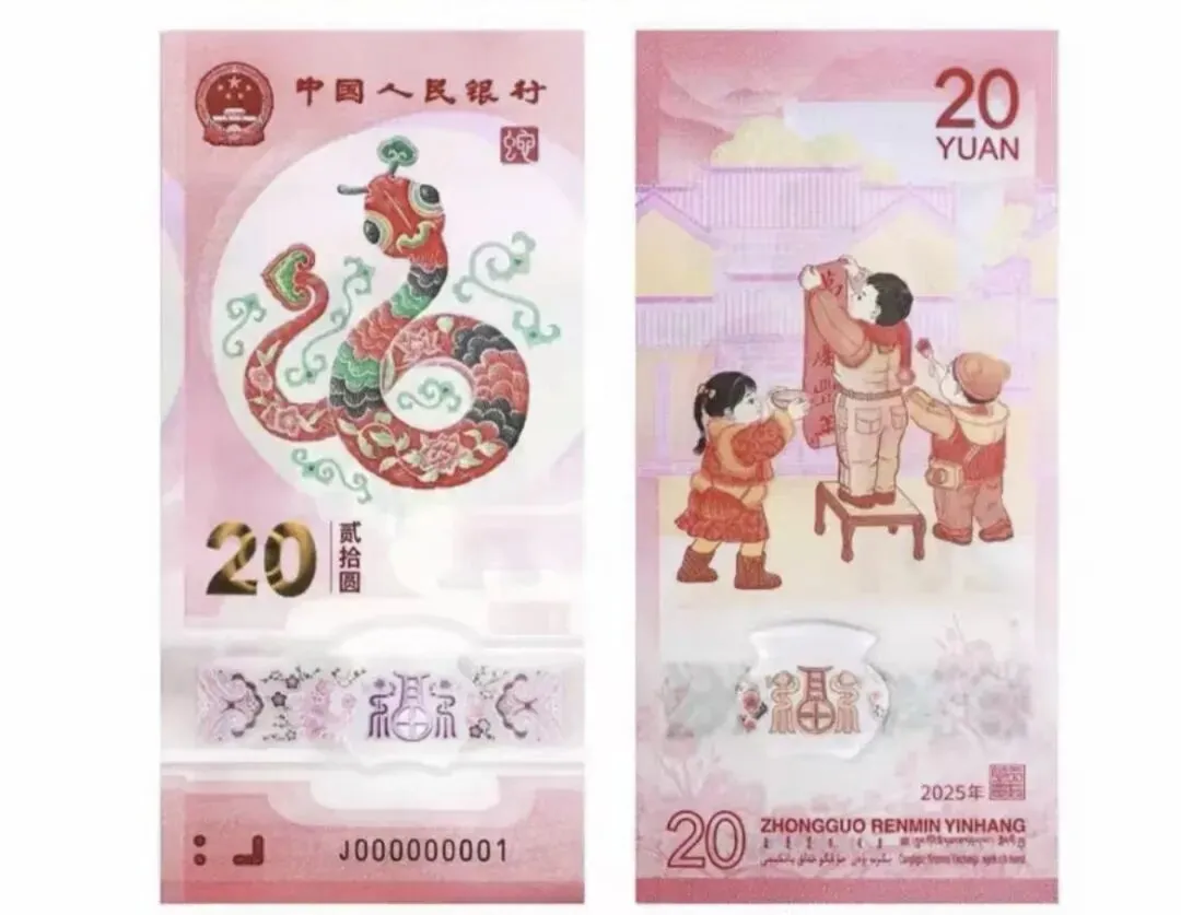 2025年1月3日发行,塑料钞,面值20元,发行总量1亿张。