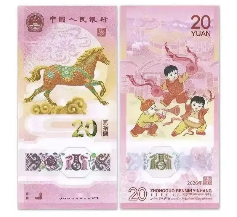 2026年1月20日发行,塑料钞,面值20元,发行总量1亿张。