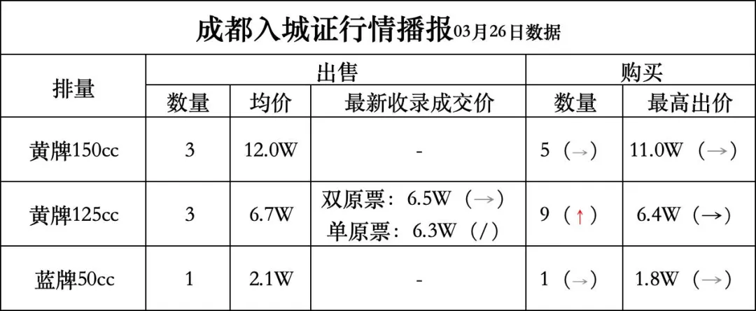 成都摩托车"入城证"2026年03月26日交易行情播报-来自"路集GO"
