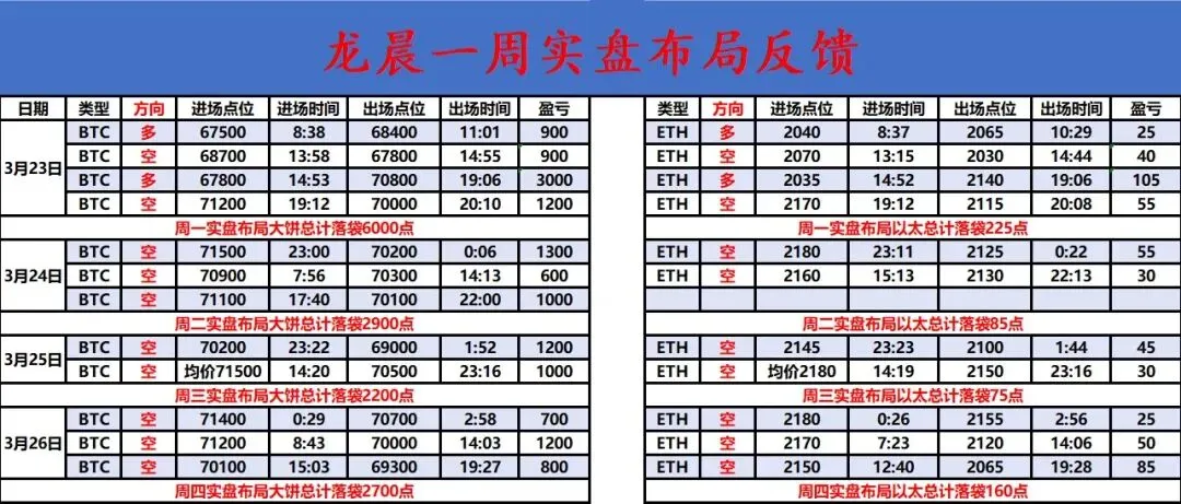 回顾日内行情,比特币凌晨开盘后价格自71600附近震荡回落,早间跌破71000关口,随后在70800-71000区域短暂整理,但反弹乏力,午后继续下行,跌破70000整数关口后加速回落,晚间最低触及68553一线,尾盘小幅回升至68950附近整理。全体基本上是呈现单边下跌的趋势,并没有日内过多反弹的力度。以太坊方面同步大饼走势,日内反弹高位2170附近,整理走低,晚间最低跌至2050附近止跌,目前收复至2060附近震荡盘整。我们日内也是秉承着关键压力不破位,继续延续看空头放量得思路,实盘日内大饼总计落袋2700点空间,姨太总计落袋160点空间。不是行情不好做,而是你没把握住方向。