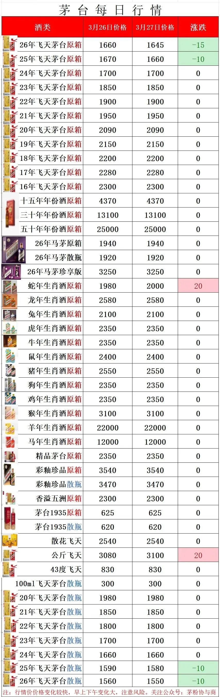 1.以上行情价格为酒商调货价,全国各地酒商调货价略有差异属正常现象!