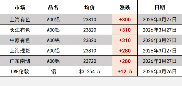 市场铝价