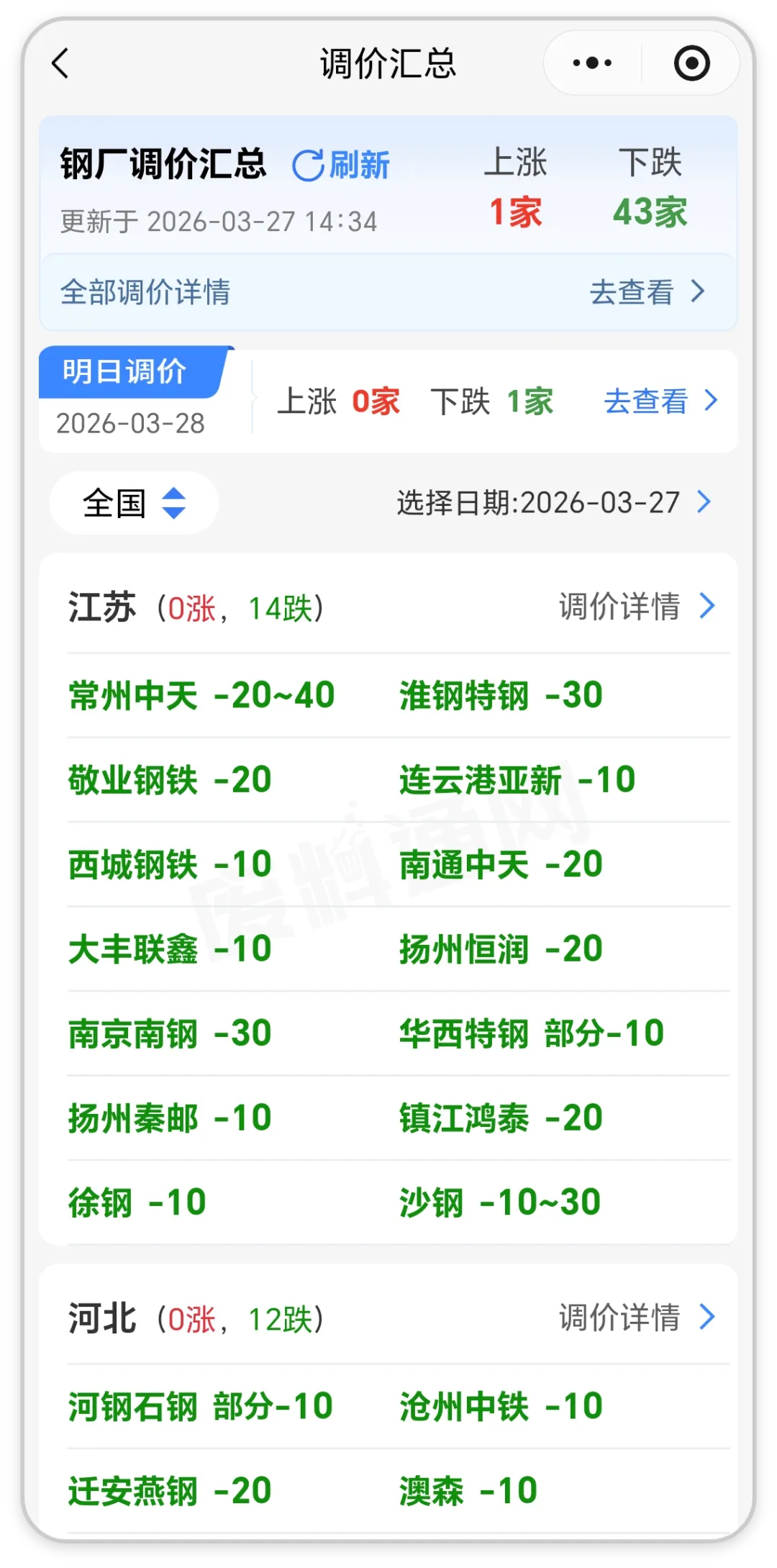废钢大面积下跌!全国钢厂废钢铁最新价格行情(3月27日)