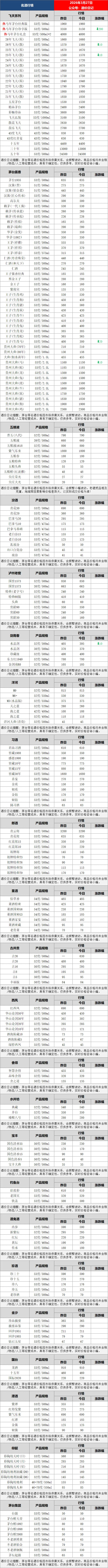 其它名酒,剑南春水晶剑下跌,同时今日新增古井贡古26的行情参考,更多名酒具体行情如下图表:
