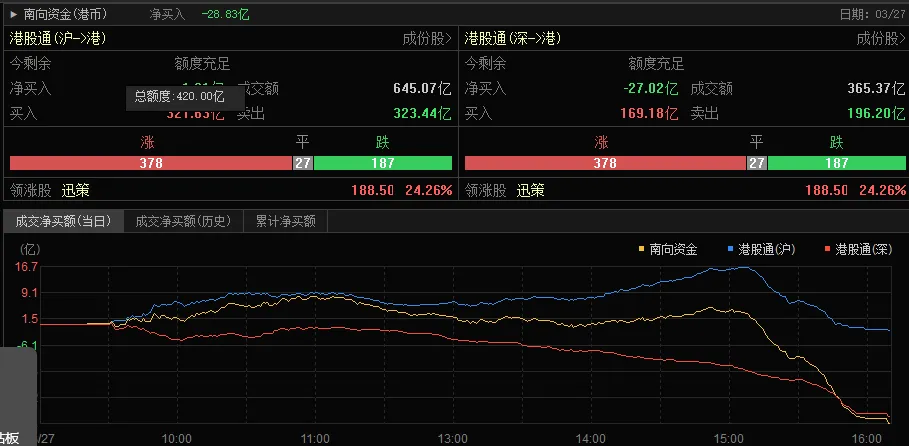 港股今天一般(如上图,来源choice),南向流出-28亿(如下图,来源choice)。