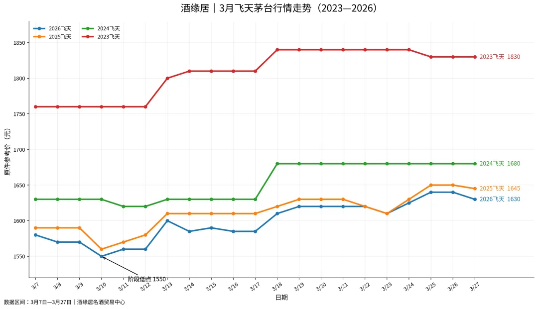 ·2026年飞天:单瓶价格1640元(较昨日下跌15元)