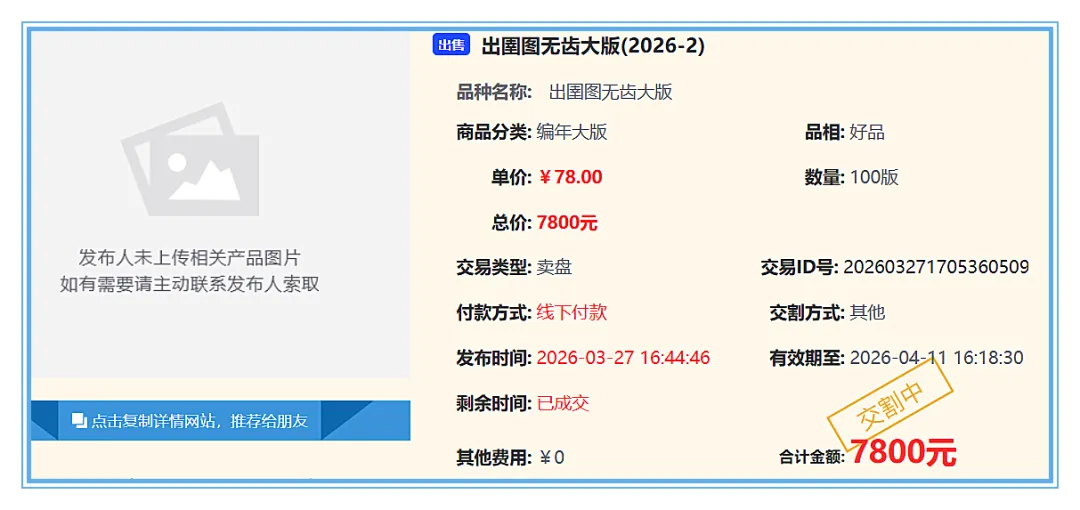 出圉图无齿纪念邮折113套81元,出圉图无齿纪念邮折188套78元,出圉图无齿纪念邮折58套76元,出圉图无齿纪念邮折50套75元,出圉图大版80版125元,出圉图无齿大版23版80元,出圉图护邮卡7套26元。