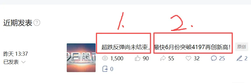 本号在昨天中午发文提示:超跌反弹尚未结束,最快在6月份就能突破前高4197点再创一个新高出来!
