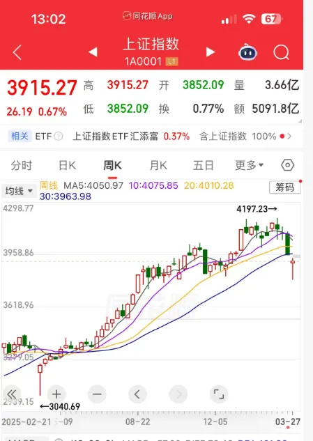 自3月上旬以来,大盘已经是周线3连阴了,截止到今天中午收盘,大盘仍然是周线4连阴的状态,只要今天大盘在下午收盘前,能够拉升到3904点以上,就能把周线收红,继续保持9.24行情以来最多周线3连阴的这一历史规律!