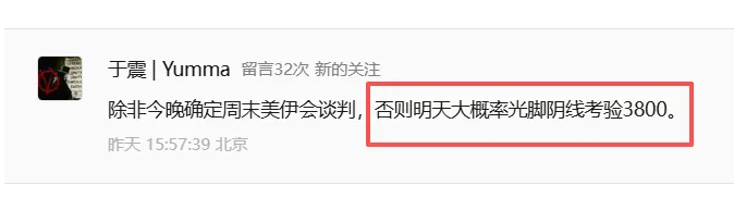 在昨天的文章留言评论区,有位北京读者预判大盘在今天要收光脚大阴线去考验3800点整数关,这个光脚大阴线的场景在今天怕是见不到喽!