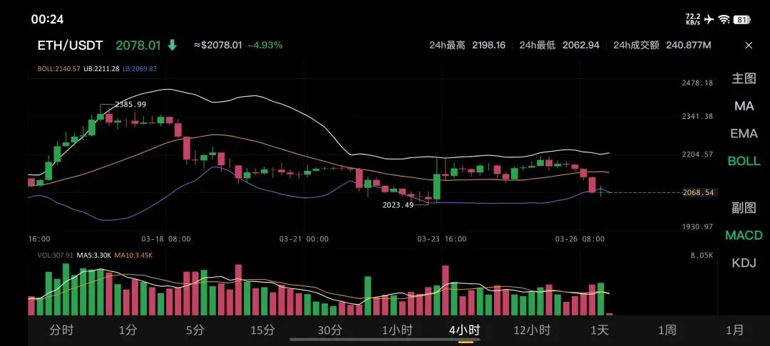 · 关键支撑:BOLL下轨 2069.87 与24h低点 2062.94