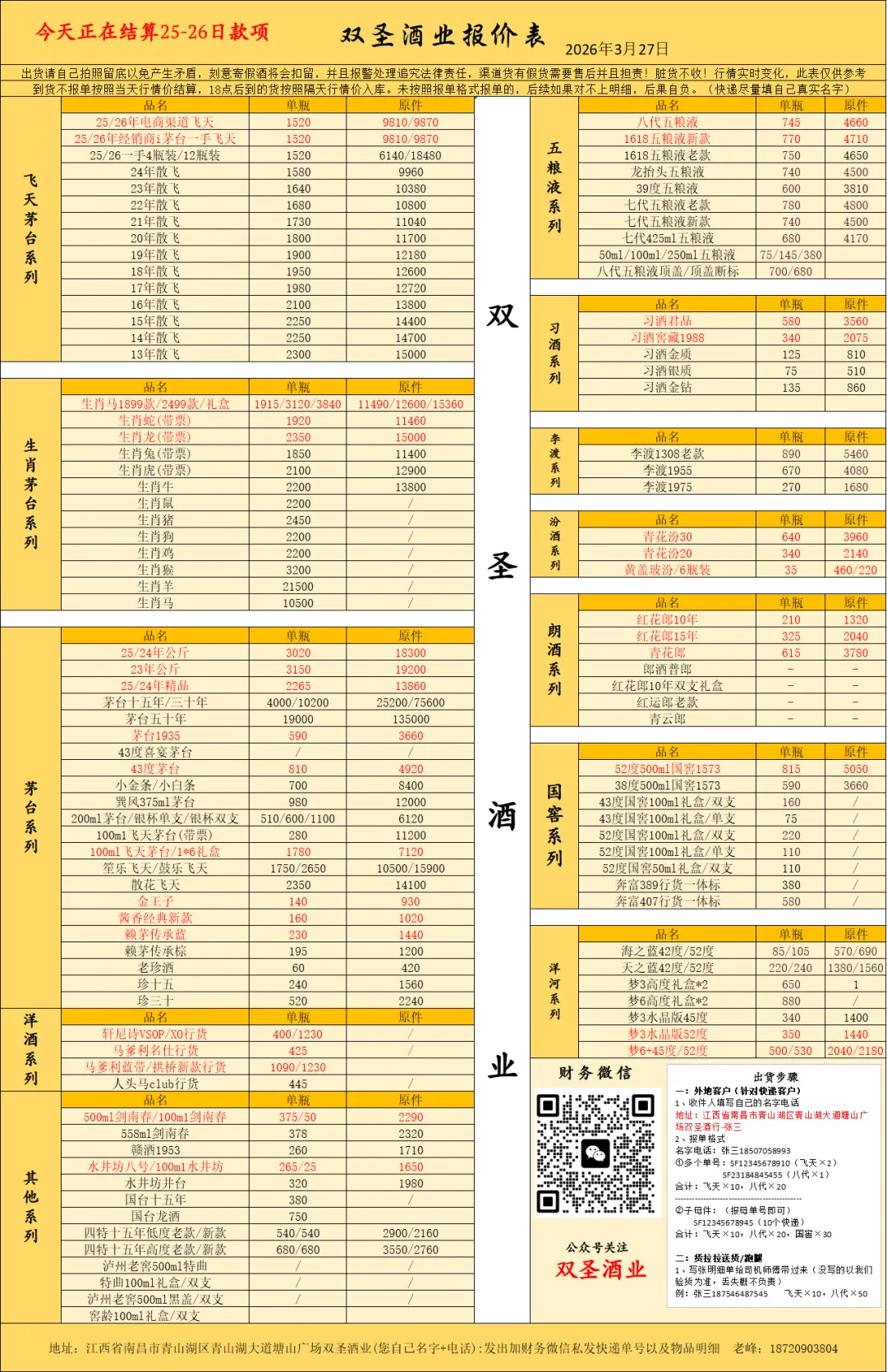 即日起,寄存超过15天的,出货时茅台+5、五粮液+2、飞天原件+15、八代原件+10、国窖+3.需要寄存的直接跟财务说明即可。