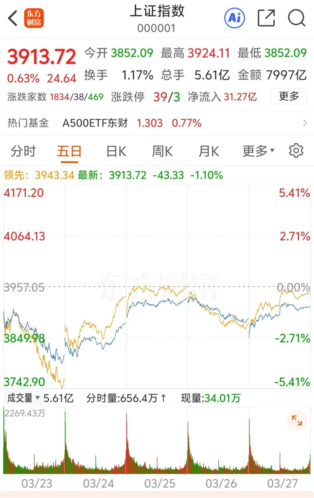 今天来跟大家好好聊聊本周(3月23号到3月27号)的A股市场行情,整体来看,这周的走势可以说是大起大落,先暴跌后修复,最终周线是收涨的,市场波动特别大,相信不少股民朋友都感受很深。