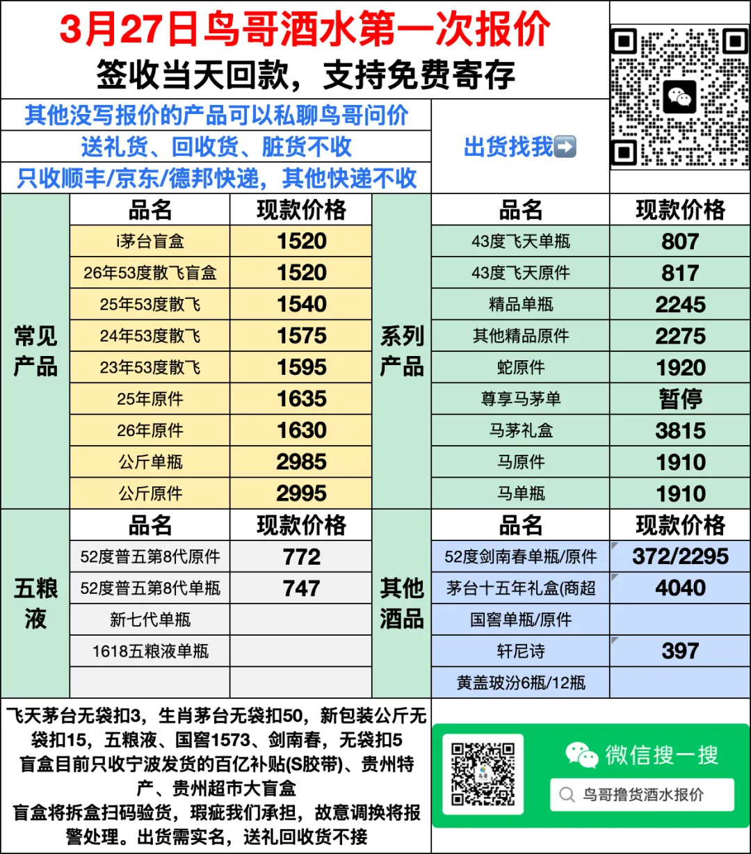当前位置:首页>行情>3月27日茅台五粮液每日最新行情-收货结算价