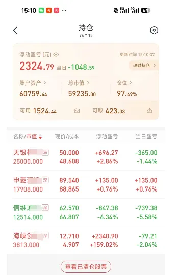 现在这个行情根本不敢留恋,只要赚钱了,就先落袋