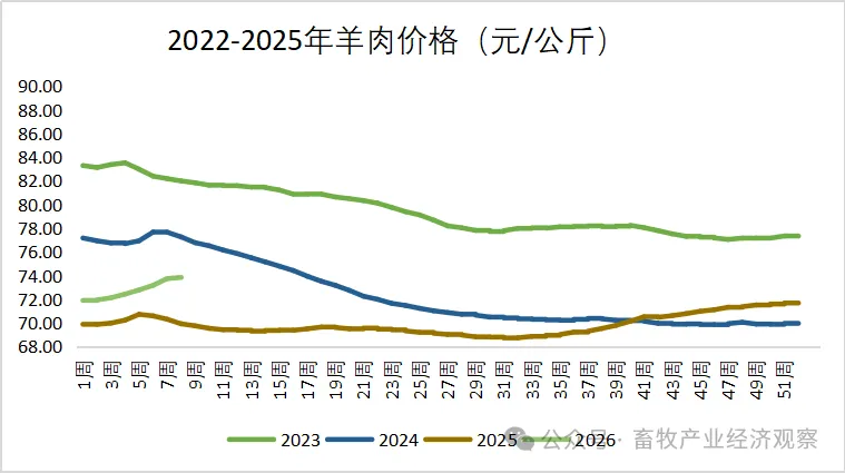 羊肉价格由涨转跌:全国羊肉平均价格73.84元/公斤,比前一周下跌0.2%,同比上涨5.9%。河北、内蒙古等10个主产省份羊肉价格71.49元/公斤,比前一周下跌0.2%。主产省份活羊价格31.12元/公斤,比前一周下跌0.2%,同比上涨8.3%。