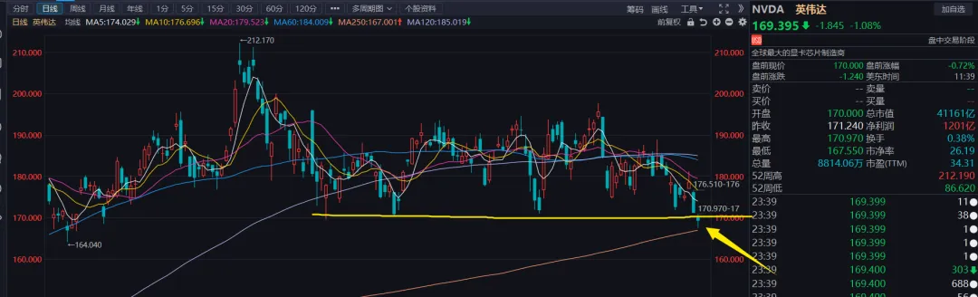 现在盘中还在创新低,K线形态上,已经跌漏了前面的震荡下沿了。用付鹏的话说,该跌的东西跌了,那不叫恐慌。不该跌的好东西都开始砸了,那才是恐慌的开始!如果说咱们市场里动不动几百倍市盈率的科技股市该跌的东西,那好吧,前面大跌算是活该。那达子这个全球AI总龙头,40倍市盈率也要是开始跌漏了,那美股是不是还有一波恐慌的释放呢?老王无法预测,因此建议咱们还是轻仓过周末。盘中我也跑了三分之一,留了两成小仓位在里面当底仓吧。