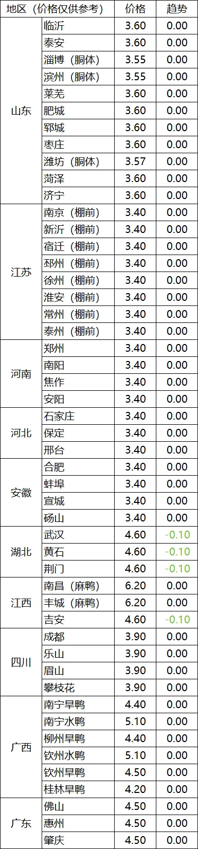 鞍山地区肉毛鸡棚前收购价3.45-3.55元/斤,与27日相比持平;