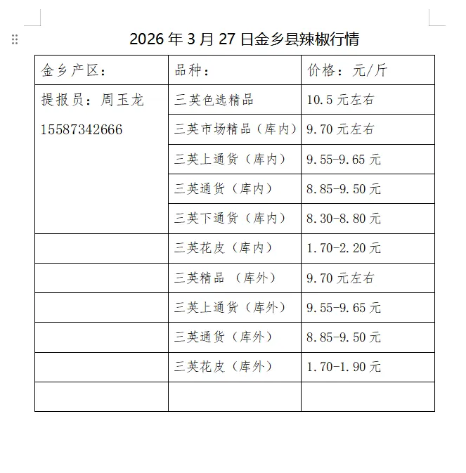 2026年3月27日金乡县辣椒行情