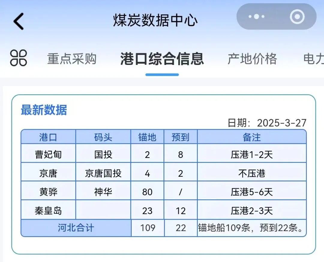 2026年3月22日秦皇岛港因大雾封航,本次封航时间为8小时10分钟,本月累计封航时间为14小时40分钟;3月22日曹妃甸港因大雾封航,本次封航时间为23小时,本月累计封航时间为55小时40分;3月23日黄骅港因大雾封航,本次封航时间为15小时30分钟,本月累计封航时间为38小时30分;3月22日京唐港因大雾封航,本次封航时间为28小时50分钟,本月累计封航时间为43小时10分钟;